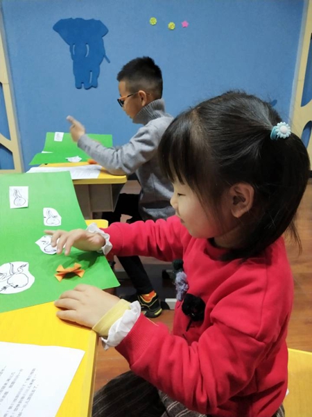 在观看了蝌蚪发育的动图后,小朋友们争先恐后地剪贴知识图版,在动手学习中,对青蛙的变态发育过程有了更深入的理解,而且,他们还主动举例说出了毛毛虫变蝴蝶的过程也是变态发育过程。课程临近尾声,小朋友们还用手工纸制作了折纸小青蛙。