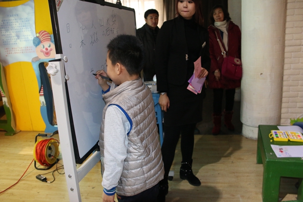 课堂上,通过老师的介绍,小朋友们了解到中国文字史是中国文字长达数千年发展和演变的历程,依照发展的时间顺序,基本可分为先秦、秦、汉、唐时期文字,宋元、明清时期文字,中国近代文字和中国现代文字。而文字的发展经过了甲骨文、金文、大篆、小篆、隶书、草书、楷书、行书等书体演变。鉴于小朋友们很好奇甲骨文,老师告诉大家,它是目前所发现的最早的中国文字,是殷商时代刻在龟甲或兽骨上的文字。这些文字主要是用来卜断吉凶的。占卜的过程,即先利用火烧灼龟甲,龟甲上便会出现裂痕,商代的人们便根据这裂痕卜断吉凶,并将卜问的事情和结果刻在龟甲上,而这些刻在龟甲或兽骨上的文字便称为“甲骨文”。