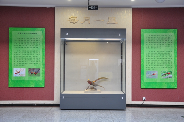 黑龙江省博物馆共收藏有红腹锦鸡标本10件,其中有8件为外表华丽的雄性锦鸡。而此次展览展出的红腹锦鸡为雌雄各一,意在让观众清楚地能够了解这类特种鸟。