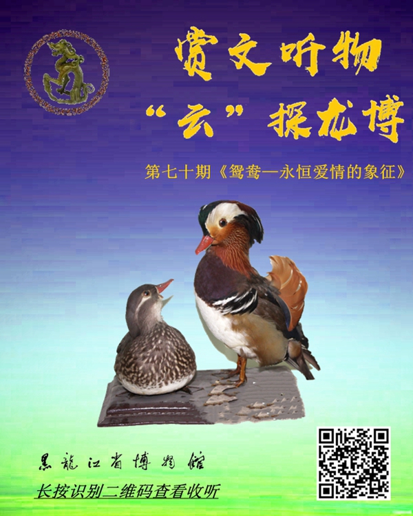 鸳鸯为我国著名观赏鸟类,它们主要栖息于内陆湖泊和溪流边,在内蒙古和东北北部繁殖,越冬时在长江以南直到华南一带,属留鸟,是我国著名特产珍禽之一,也是国家二级保护动物。目前,黑龙江省博物馆所收藏的9只鸳鸯标本,均是老一辈的博物馆工作人员在野外采集得来,其中不乏有近百年的老标本了,实属珍贵。