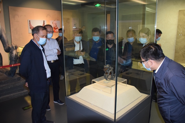 整个观展过程中,调研组成员对黑龙江省出土的满洲龙等古生物化石,以及铜坐龙、齐国王墓出土丝织品等文物产生了浓厚的兴趣,不时驻足观看、询问细节,王军馆长都一一认真解答。