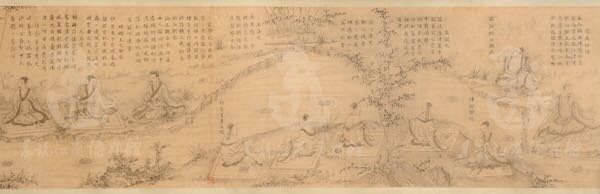 修禊非自兰亭始,却因兰亭而不朽。此幅《兰亭序》图卷是现存最早的兰亭全图,它不仅是古人兰亭修禊的直观史料,也是一件难得的艺术品,具有弥足珍贵的历史价值。