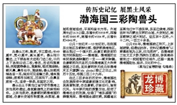 龙博珍藏篇之一百六十六:渤海国三彩陶兽头