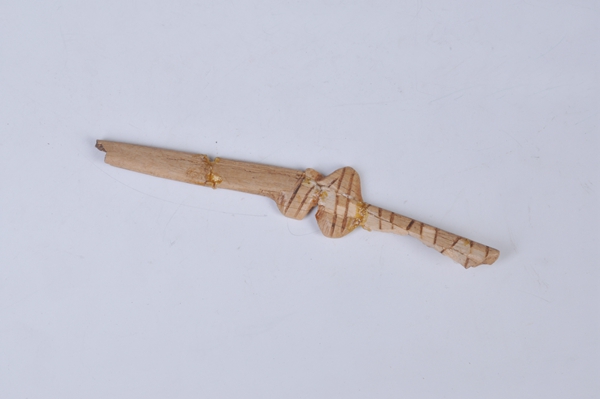 这件刻花骨簪,在莺歌岭遗址上层出土,年代为商周时期,为古人束发工具,兼具装饰功用,现藏于黑龙江省博物馆。簪,一般有金、银、玉、骨等材质,是中国古代发型中最基础的固定和装饰工具,人们辫发盘髻或者束发着冠,基本上都需要用簪进行固定。早期的簪多骨制,一般还要在簪的首部雕刻装饰文案。后来,随着社会发展,出现了金属制成的簪和玉簪,骨簪就很少被使用了。