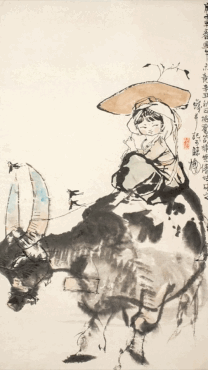 黑龙江省博物馆藏 程十发 《淡彩傣族姑娘牧牛图轴》