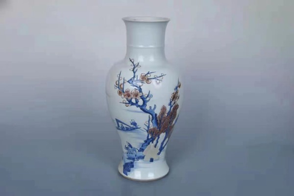 釉里三色,创烧于清代康熙时期一釉下彩品种,它也是康熙一朝特有的品种,它在青花釉里红的基础上增加了一种以铁为呈色剂的釉下彩——豆青色,有时也会加入白粉色,由于透明釉的保护作用,釉里三色相互映衬,永不退色。