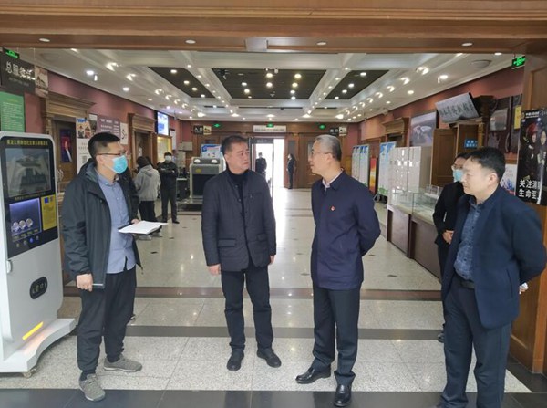 在检查中,侯伟副厅长首先亲身体验游客入馆流程。在博物馆门口处首先用手机进行扫码预约,出示预约码后,通过扫健康码核验、仪器测温、安全检查等环节顺利入馆。在体验后,侯伟副厅长指出:临近清明节假期,每天可预约的人数应适当增加,在保证防疫工作不松懈的同时,要最大程度地满足广大群众对公共文化服务的需求。