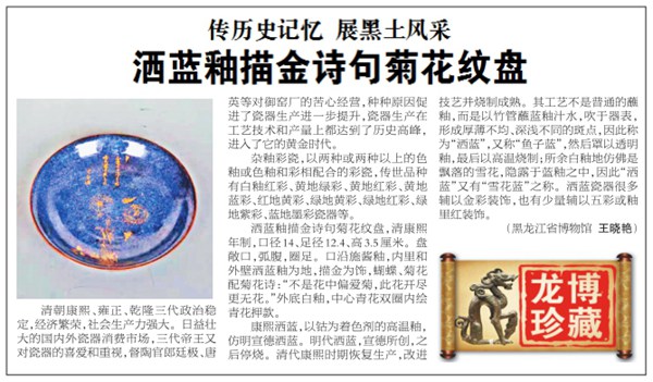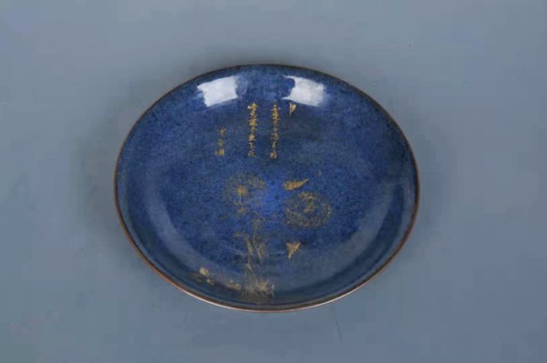 龙博珍藏篇之一百八十四:洒蓝釉描金诗句菊花纹盘