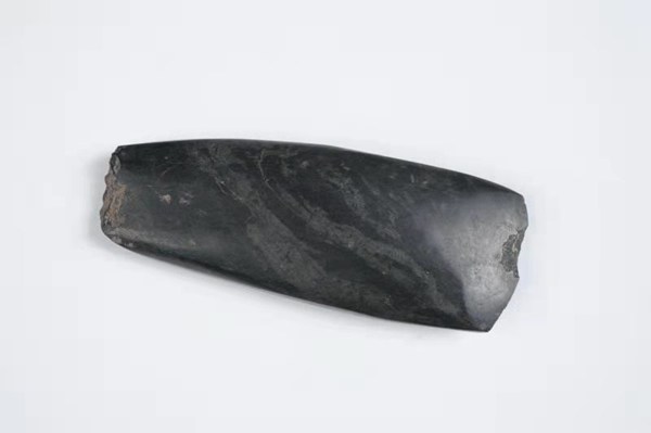 这件石斧出土于黑龙江省密山市新开流遗址,现藏于黑龙江省博物馆。其制作方法为先用直接打击法打出雏形,再经磨制成形。这种先打后磨的方式,说明制作石器的技术更为先进。