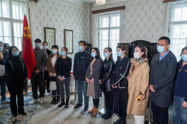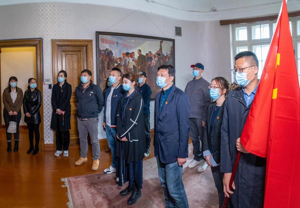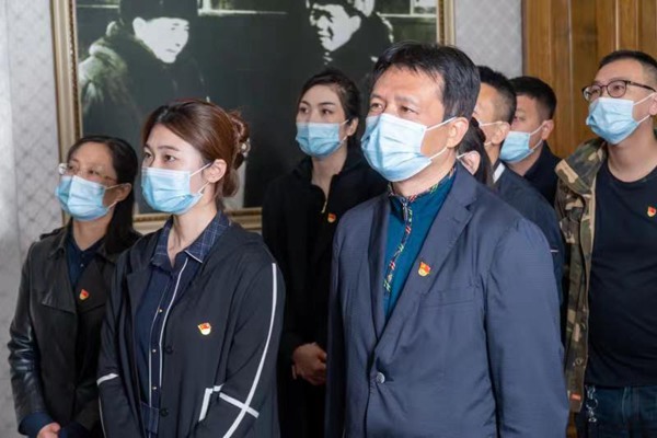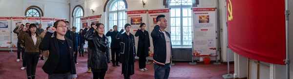 在参观过程中,全体人员庄严地站在党旗前,举起右拳,大声宣誓,重温誓词,以坚定有力的宣誓声,表达不忘初心、矢志奋斗的信念和决心。