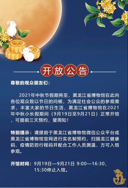 黑龙江省博物馆中秋节假期开放公告