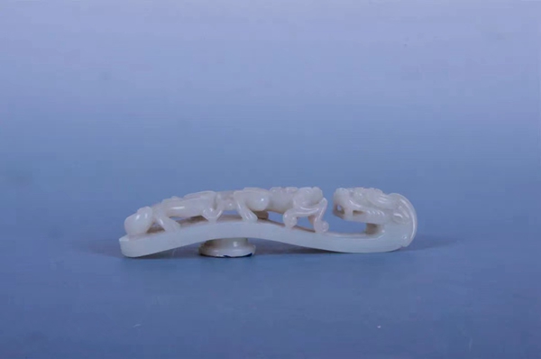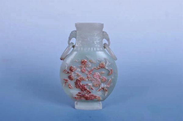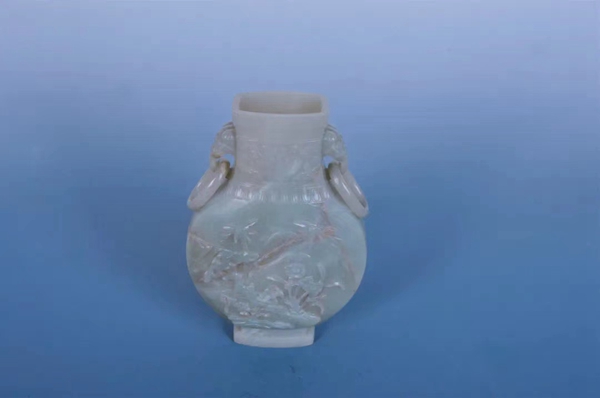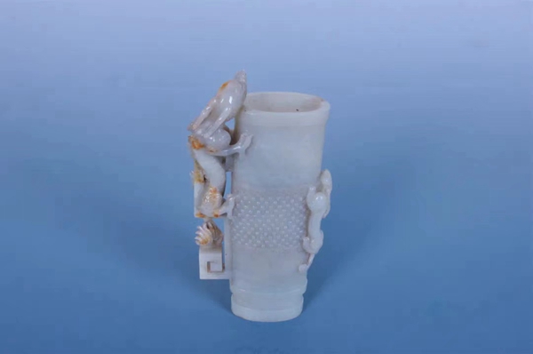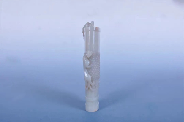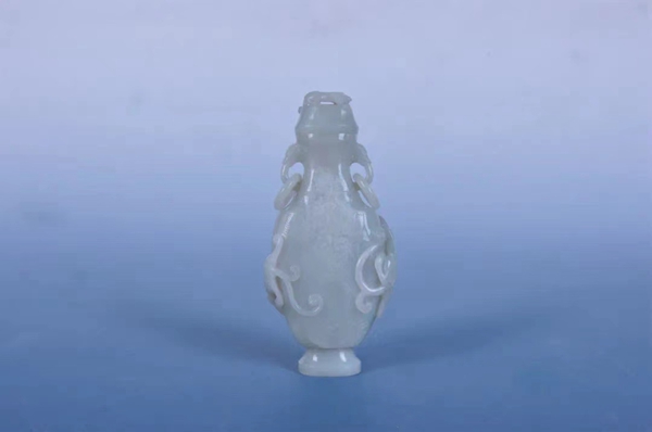 ▲清 雕蟠龙蚩虎白玉圆瓶