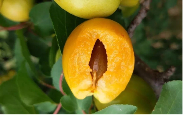 当然,无花果也不是真的没有花,是因为它的花很小,被包裹在大大的花托里,不易被发现,是隐头花序。而我们吃的无花果,也不是真正的果实,而是花,是由整个花序发育而成的聚花果。如果掰开无花果,你会看到里面有丝状物和许多小籽,丝状物就是花蕊,小籽就是它的种子。