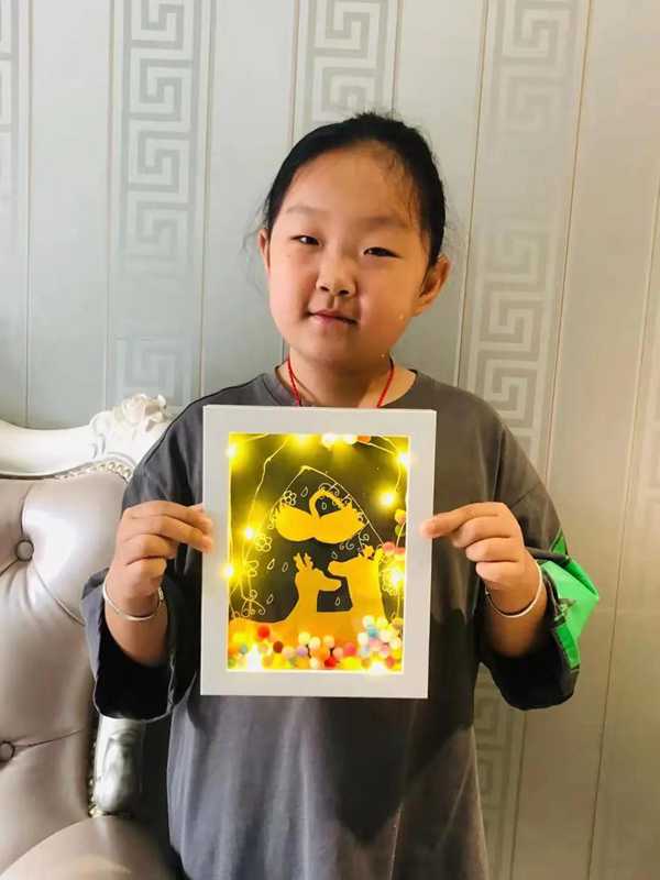 在互动环节,同学们发挥想象力,裁剪图样,将自己对课堂所学内容的理解以手工作品的形式展示了出来。通过《走进赫哲》课程,学生们增加了对我省世居少数民族赫哲族的了解,感受到了赫哲族同胞所创造的丰富而珍贵的物质和精神文化,加深了对家乡、对博大精深的中华文化的热爱。