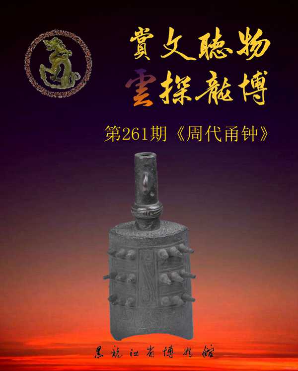 黑龙江省博物馆馆藏的周代甬钟,通长14.0厘米,通宽32.0厘米,钟体为合瓦形,两面各有18只呈柱状钮的“枚”,部分已残。钟体上端有用于悬挂之用的“甬”,甬的下部有凸起的“旋”,旋上方有呈环形钮的“干”。钟体一面的钲部界格及篆间均饰有窃曲纹,鼓部亦饰有纹饰;另一面为素面。饰有纹饰的一面应为打击面。