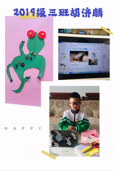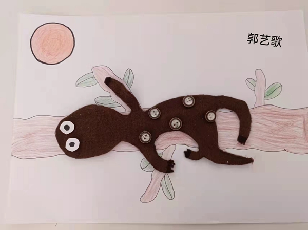 在一首欢快的歌曲伴奏下,大家动手实践,一只只五彩斑斓,或憨态可掬,或凛然霸气的蜥蜴在小朋友们的巧手下制作出来。
