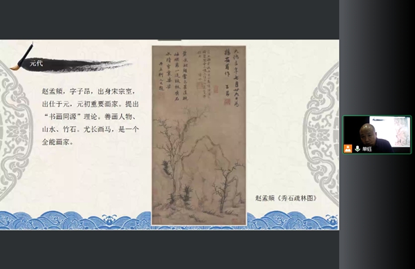 为贯彻落实《关于加强文物保护利用改革的若干意见》文件精神,积极开展“我为群众办实事”实践活动,加强文物鉴定人才培养,推动构建公共文化服务体系,省博物馆充分发挥资源优势,特别推出“龙博鉴赏”系列讲座。12月24日,原黑龙江省博物馆龙博艺术品交流中心主任蒋义涛带来专题讲座龙博鉴赏:中国书画(第六讲)——元代绘画。讲座通过会议软件线上举行,省博物馆(省民族博物馆)相关业务工作人员同步观看直播。