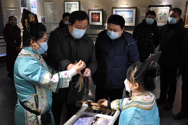 30日上午,省文化和旅游厅党组书记、厅长陈哲来到省博物馆参观了展览。参观过程中,陈哲认真听取渤海靺鞨绣第四代国家级传承人孙艳玲的讲解后强调,要不断健全中华优秀传统文化的传承体系,切实做好非物质文化遗产的保护与传承。黑龙江省冰雪资源优势得天独厚,渤海靺鞨绣具有鲜明的历史、地域、民族特色,是黑土文化中的闪光点,要将“靺鞨绣”与“龙江冰雪元素”创意融合,打造成更加亮丽的龙江文化名片,将我们的特色文化资源推向全国、推向世界。参观结束后,陈哲强调,元旦、春节临近,省博物馆要统筹做好假期疫情防控和开放服务,在做好疫情防控工作基础上,开展好线上线下的展览、文化活动,满足广大群众和游客的精神文化需求。