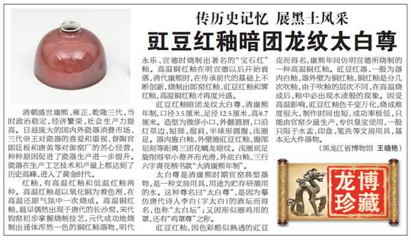 龙博珍藏篇之二百一十七:豇豆红釉暗团龙纹太白尊