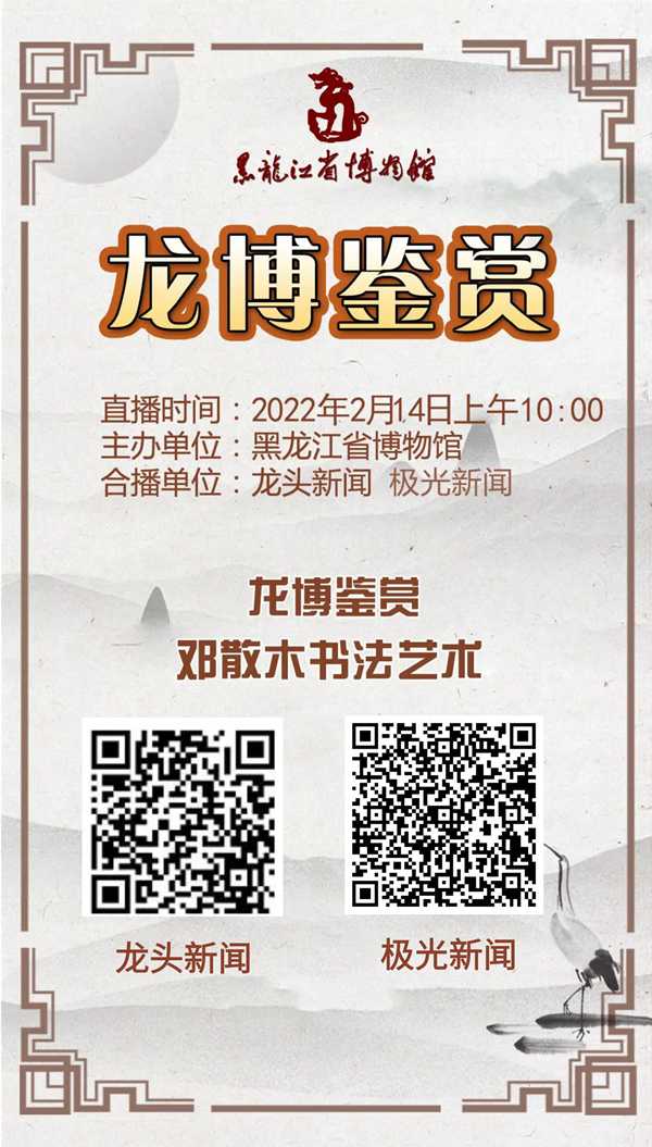 为贯彻落实《关于加强文物保护利用改革的若干意见》文件精神,积极开展“我为群众办实事”实践活动,省博物馆充分发挥教育职能,利用资源优势,推出“龙博鉴赏”系列讲座,在加强博物馆内部文物鉴定人才培养的同时,实现资源共享,打造面向社会的文物鉴赏优质课程,为广大文物爱好者提供专业的文物鉴赏学习平台。2月14日,省博物馆将通过龙头新闻、极光新闻对讲座进行网络直播。欢迎您在线观看,探索文物背后的故事,做文化遗产的守护者和传承者!