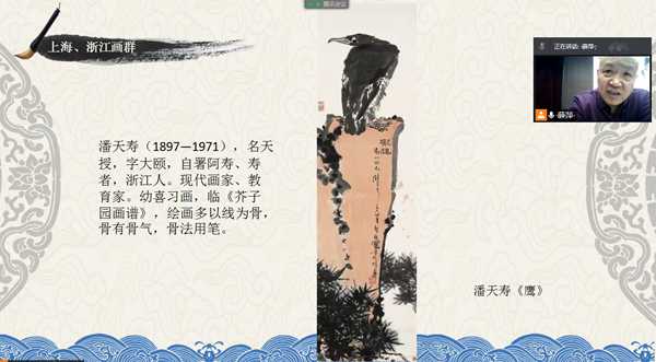 为贯彻落实《关于加强文物保护利用改革的若干意见》文件精神,积极开展“我为群众办实事”实践活动,加强文物鉴定人才培养,推动构建公共文化服务体系,省博物馆充分发挥资源优势,特别推出“龙博鉴赏”系列讲座。3月4日,黑龙江省博物馆龙博文物艺术品交流中心原主任蒋义涛带来专题讲座龙博鉴赏:中国书画(第十二讲)——中国近现代绘画艺术。讲座通过会议软件线上举行,两馆区相关业务工作人员观看直播。
