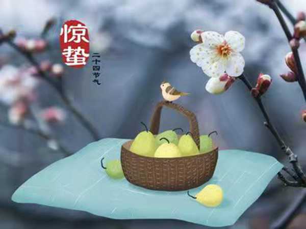 在惊蛰这天好多人家会吃梨,“梨”和“离”同音,寓意吃了梨可以让虫害远离庄稼,希望一年好收成,此外,爆炒的黄豆象征蹦蹦跳跳的害虫,带毛的芋头则象征老鼠,在惊蛰这一天把它们吃掉,寓意着除去田间的害虫,祈盼今年辛勤的耕耘之后的大丰收。
