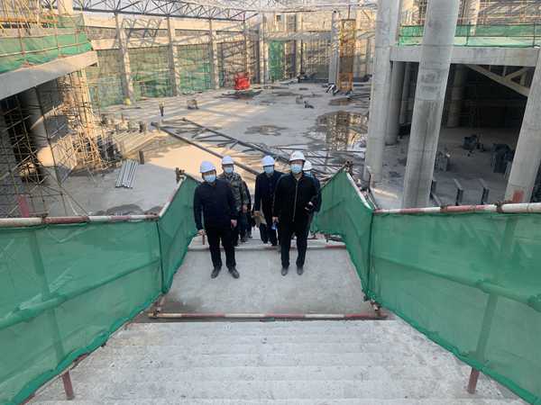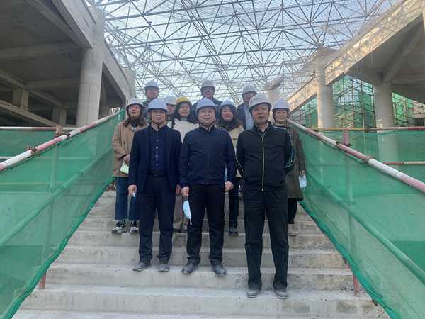 新馆施工现场多工种交叉作业,紧张而有序,一片繁忙景象。一行人实地察看主体工程建设进展,仔细对照新馆规划设计方案,听取施工情况介绍,详细了解库房、展厅、办公区、后勤服务区、社会宣教等功能性用房的施工进度,规划公共空间分区。