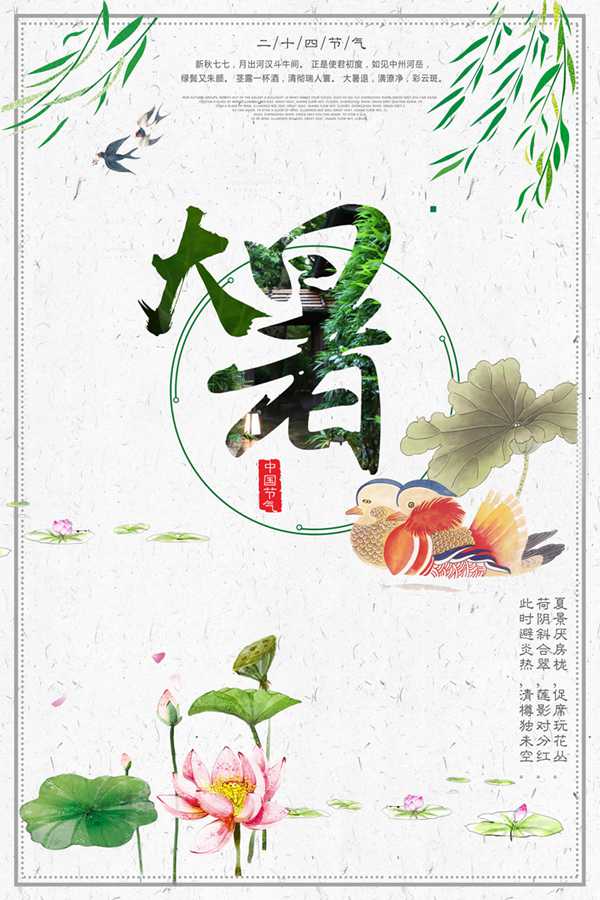 大暑节气到,大家要清淡饮食,多喝水,注意防暑哦!