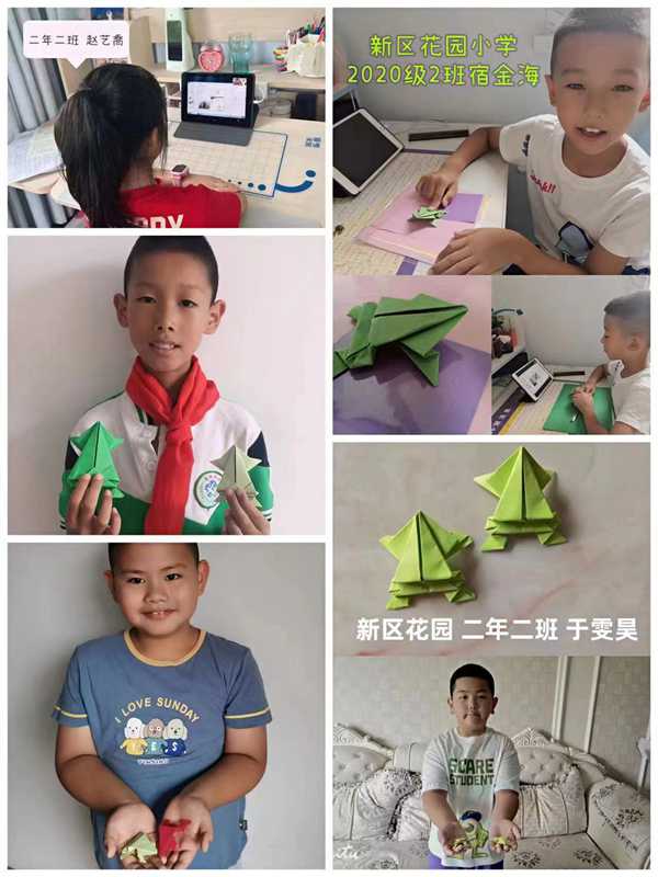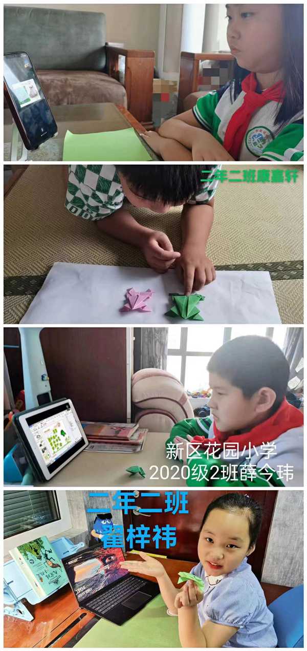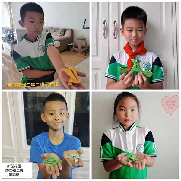 最后,小朋友们用手工纸精心折制了小青蛙,折好的青蛙经过按压还可以在书桌上蹦跳,逗得同学们哈哈大笑~课堂气氛无比欢乐,相信他们通过本节课也一定会热爱大自然中的小生命,成为有爱心、有责任心的小公民!