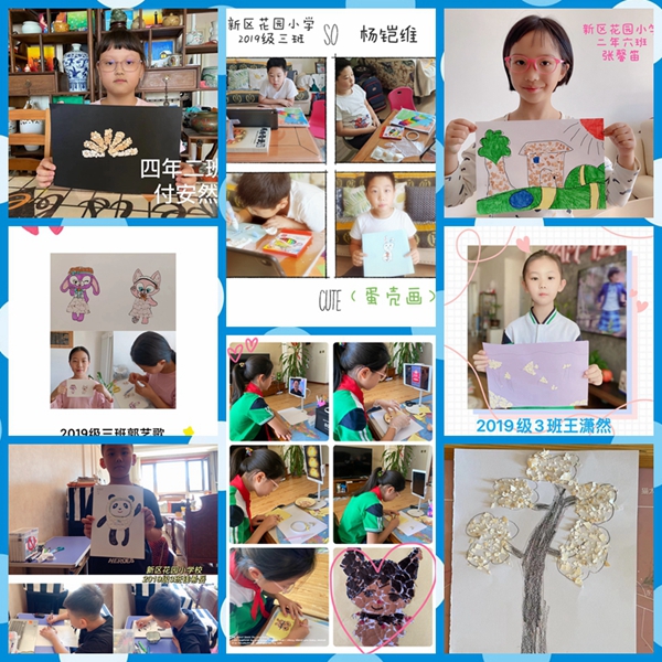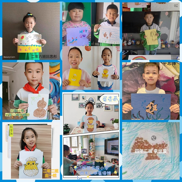 最后,老师带领大家一同进行蛋壳画的动手实践,每位小朋友都认真地进行艺术构思,利用蛋壳的颜色进行设计、由蛋壳拼接出的图案创作自己独具匠心的作品,整个过程锻炼了同学们的观察力,培养了小朋友们的想象力和创造力,大家从这项新奇又环保的手工艺术中收获知识和乐趣。