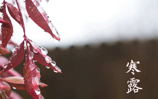 在我国民间,有“露水先白而后寒”之谚言,其意为经过白露节气后,露水从初秋泛着一丝凉意转为深秋透着几分寒冷的“白露欲霜”。从洁白晶莹的露气转为寒冷欲凝,生动地反映出气温的不断下降。每个节气有不同的习俗,寒露时节的传统习俗主要有赏枫叶、吃芝麻、吃螃蟹、饮秋茶等。