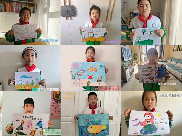 本节课运用了多元化的方式来帮助学生们感受大自然的神奇魅力,通过一步步引导,提高学生的专注力并创造持久的记忆,激发学生自主探索的兴趣,培养解决问题的能力。通过学习,大家了解了海洋食物链,了解了大自然,开拓了对大自然的感受力。活动最后,学生们拿起彩笔,完成了一幅幅色彩缤纷的海洋生物主题绘画,提升了绘画艺术创作能力。