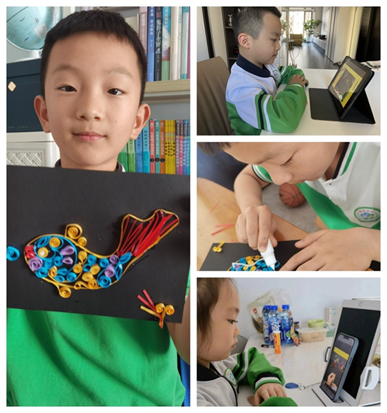 本次活动中,学生们走进衍纸艺术,根据观察到的双鱼纹大铜镜的纹样实践衍纸画创作流程,进行自由组合创作,美术特长得到了充分的展示,为学习生活增添了艺术的乐趣。在设计作品的过程中,培养了学生耐心细致的生活态度和对美的欣赏,提高了对艺术的感受力和鉴赏力。