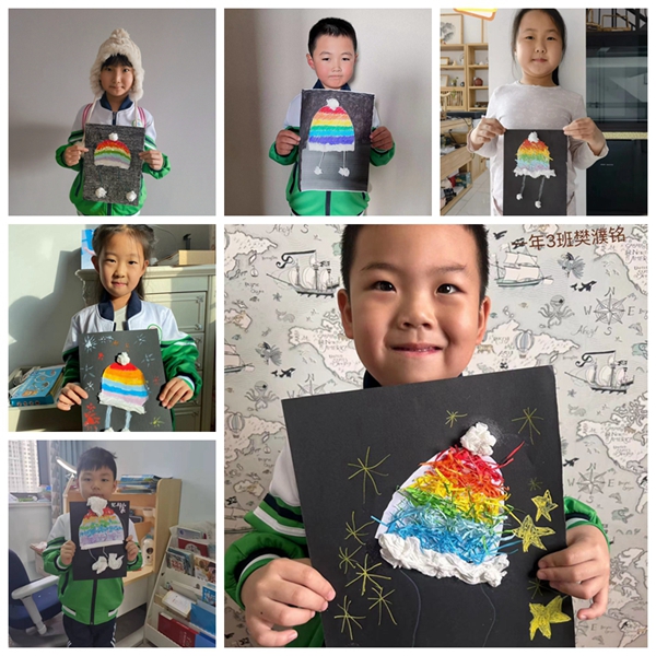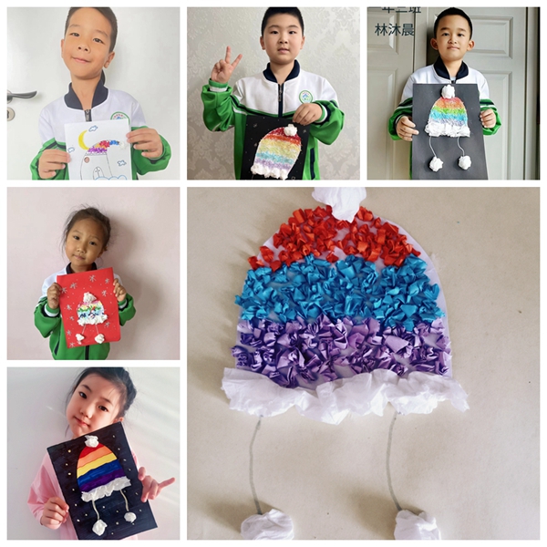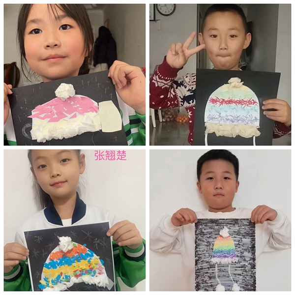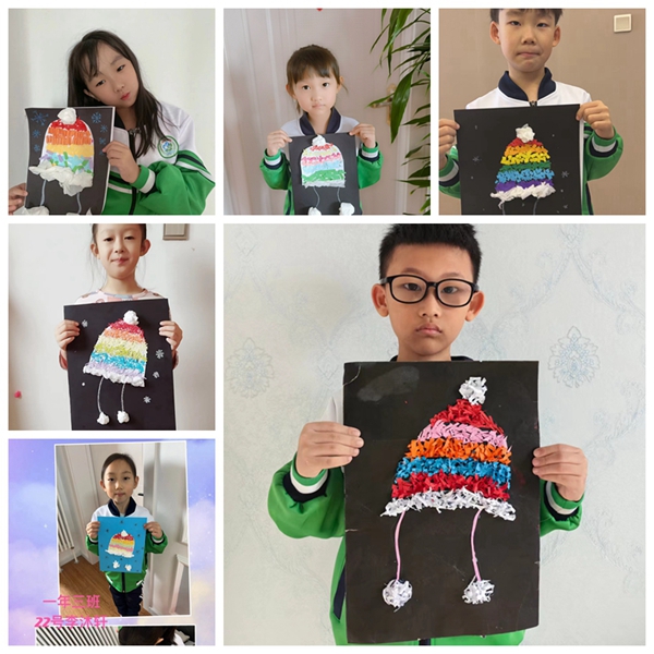 虽然师生之间隔着屏幕,但是课堂氛围充满着欢乐。学生们一边认真听取老师对于帽子相关知识的介绍,一边积极地参与互动问答。在手工环节更是聚精会神,一丝不苟,仔细按照老师示范的步骤设计制作,一顶顶帽子在同学们的巧手下逐渐成形。