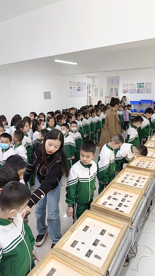 随后,省博物馆宣教人员还组织同学们有序地参观展柜中的锹甲。将颜色多样、形态各异的锹甲标本呈现在眼前,能够让学生们更加直观、更加生动地了解锹甲的特征,激发出大家探索昆虫世界的兴趣。