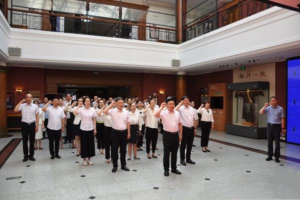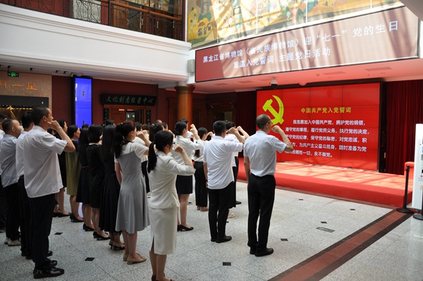 为纪念中国共产党成立102周年,学习贯彻习近平新时代中国特色社会主义思想主题教育,黑龙江省博物馆(省民族博物馆)组织开展新党员入党宣誓,老党员重温入党誓词主题党日活动。