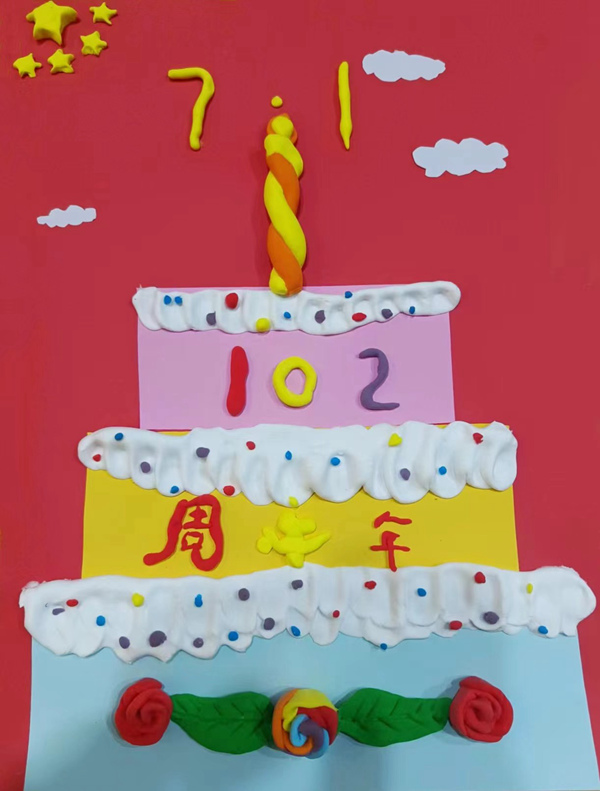 课上,老师为同学们介绍中国共产党的奋斗历程,与同学们重温党带领全国各族人民,逐步实现救国、兴国的峥嵘岁月。大家共同制作了生日蛋糕卡片献给敬爱的党。同学们用文字渲染心中的热爱,亲手填满亮丽的贺卡,一幅幅精美的图画,表达出学生们对党、对祖国的无限热爱和深情祝福,进一步激发出青少年学习党史的热情与动力,培育青少年爱国主义情怀。
