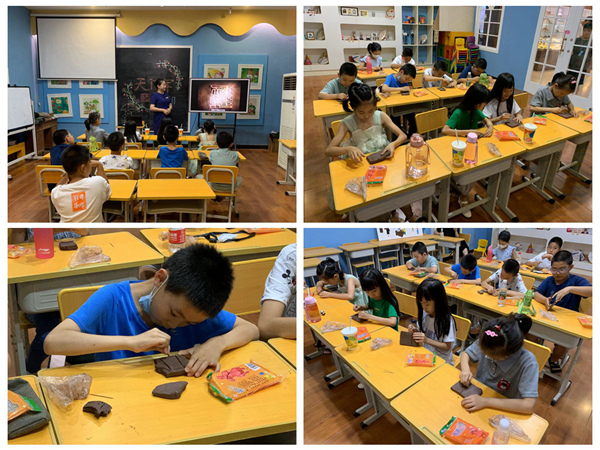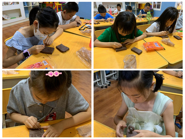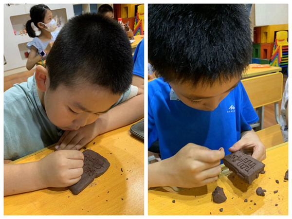 古代的官印往往呈方形,而现代的公章则是圆形或椭圆形。课堂上,老师以独特的角度开启今天的内容,激发学生们的学习兴趣,以生动有趣的语言和多媒体演示讲解天门军之印丰富的寓意,由小印章洞悉大历史,解密神秘古国——渤海国,带领大家追溯家乡历史,感受文化魅力。课程的后半段是手工DIY环节,小朋友们亲自设计,用陶土制作一枚枚属于自己独一无二的印章。
