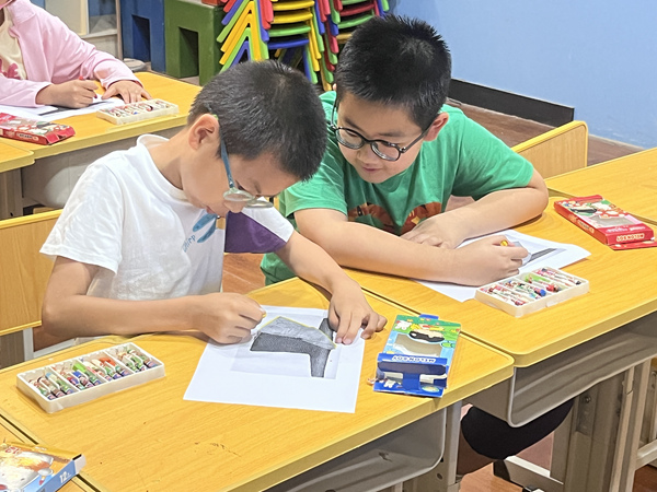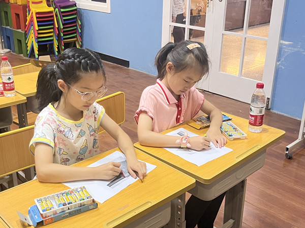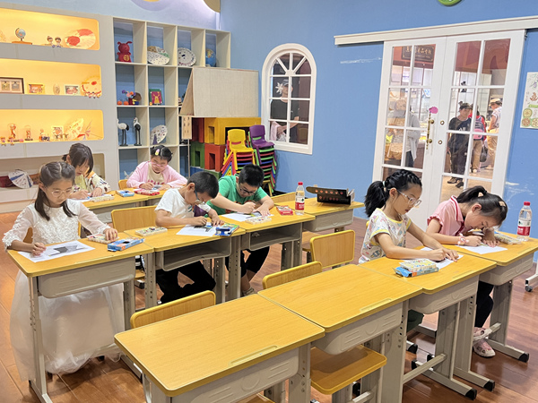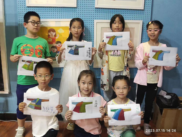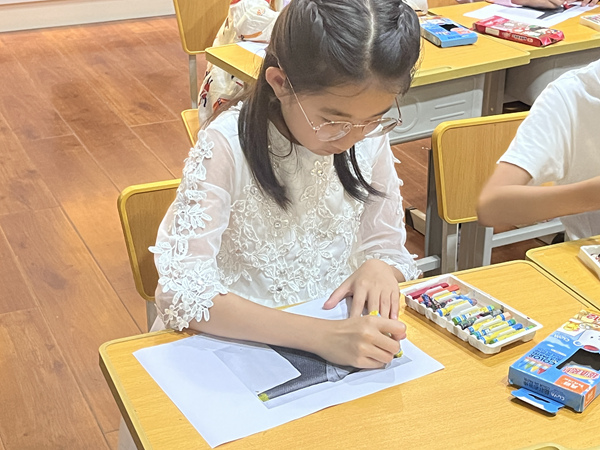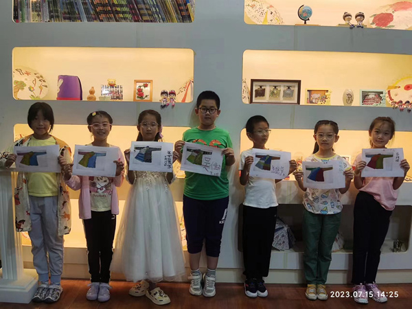 参观结束后,小朋友们在老师的带领下,以金代齐国王墓出土服饰的精美纹饰为灵感,进行绘画创作。在绘画创作过程中,小朋友们充分发挥自己的想象力,绘制出风格各异的服饰,踊跃与老师互动,积极回答老师提出的随堂小问题,课堂氛围十分活跃。课程结束之余,小朋友们纷纷展示自己的绘画成果,在学习中了解古代历史文化,在交流中体会中华优秀传统文化的博大精深,收获颇多。