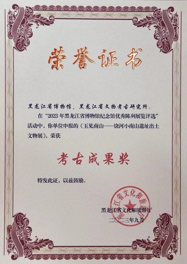 9月12日,由黑龙江省文化和旅游厅组织开展的“2023年黑龙江省博物馆纪念馆优秀陈列展览评选”结果揭晓。黑龙江省博物馆陈列展览《哈尔滨往事——20世纪初哈埠社会生活展》获得一等奖;黑龙江省博物馆与黑龙江省文物考古研究所共同举办的《玉见南山——饶河小南山遗址出土文物展》获得考古成果奖。