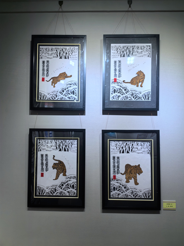 赫哲族鱼皮制作技艺作为国家级非物质文化遗产代表性项目之一,如今已经融入了当代文化旅游和群众文化生活之中。其创作题材多样化、艺术语言多元化,已经深深根植了中华传统文化的优秀基因,其积淀着华夏文明的发展,承载着中华优秀文化的精华,被誉为“写在鱼皮上的史书”。“赫哲族鱼皮制作技艺技能培训班结业作品展”分为“新国潮”“十二生肖”“二十四节气”“传统吉祥文化”“现代冰雪文化”五个部分,展出指导老师及参训学员创作的艺术作品79件套。在互动展示区,学员进行鱼皮画制作流程展示,一幅幅作品栩栩如生,呈现出丰富多彩的万千形态。