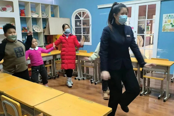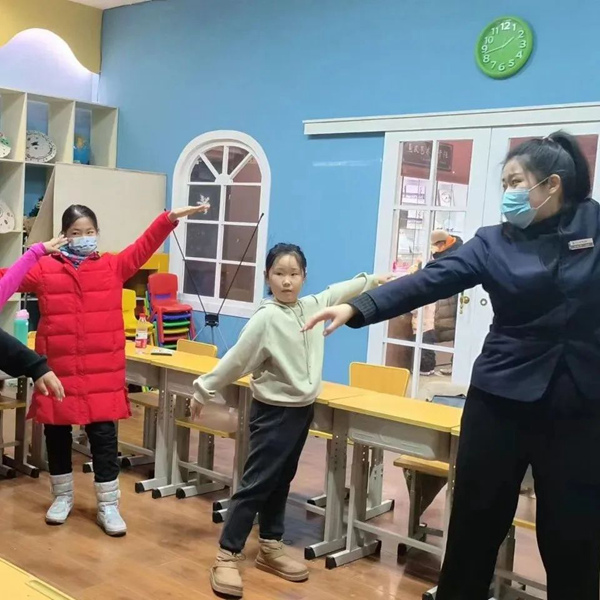 在感受鄂伦春族的特色风情后,老师细致耐心地带领同学们学习鄂伦春族特色舞蹈,同学们表现出了极大的兴趣,课堂氛围十分活跃。