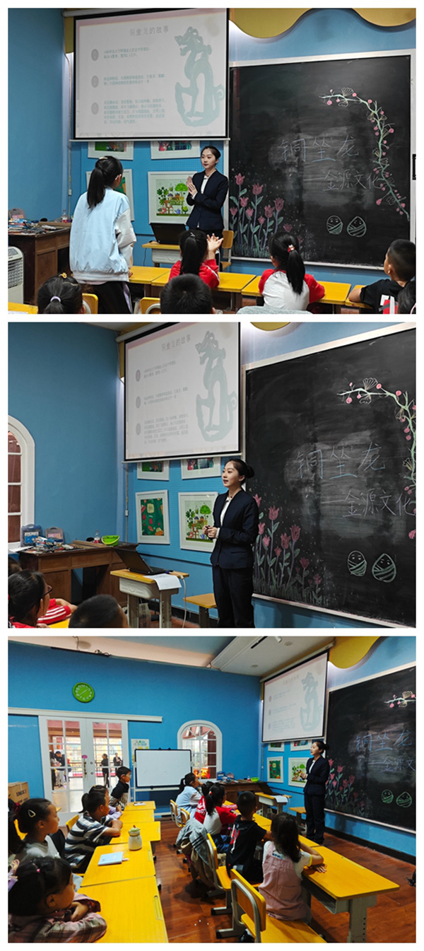 本节科普课围绕黑龙江省博物馆“镇馆之宝”铜坐龙展开,带领同学们探究灿烂的金源文化。通过老师的介绍,大家了解到在中国古代文物中,“龙”的形象丰富多样,金代铜坐龙的身上凝聚了中华民族几千年龙文化的精华,无论从考古还是从艺术的角度,都具有很大的文化研究价值。