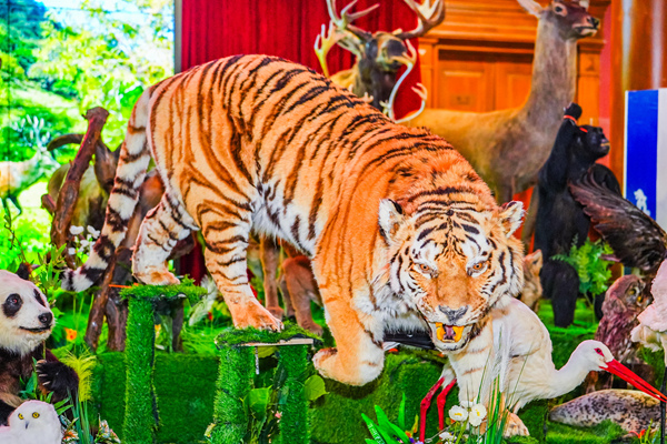 憨态可掬的抱竹熊猫、高达2.4米的熊、凶悍威猛的东北虎......9月30日,黑龙江省博物馆推出“龙博百年自然标本国庆特展”。