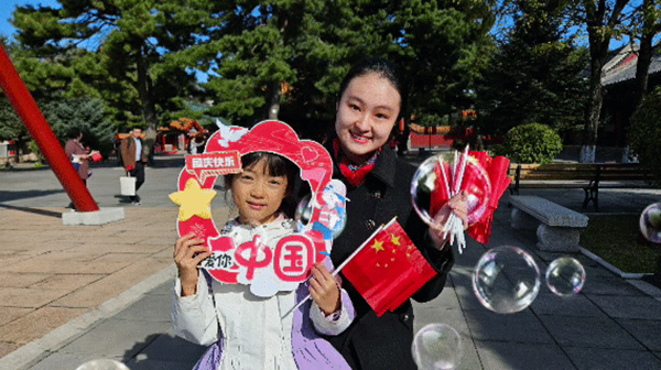 活动现场,免费为游客发放手持国旗,在特别设置的国庆手持相框前拍照留念。无论是个人独照还是家庭合影,都在这片充满节日氛围的场景中定格了对祖国的热爱与祝福。游客们表示,此次“手持国旗,定格爱国情”主题活动不仅是一次为祖国母亲庆祝生日的仪式,更是一次深刻的爱国教育。