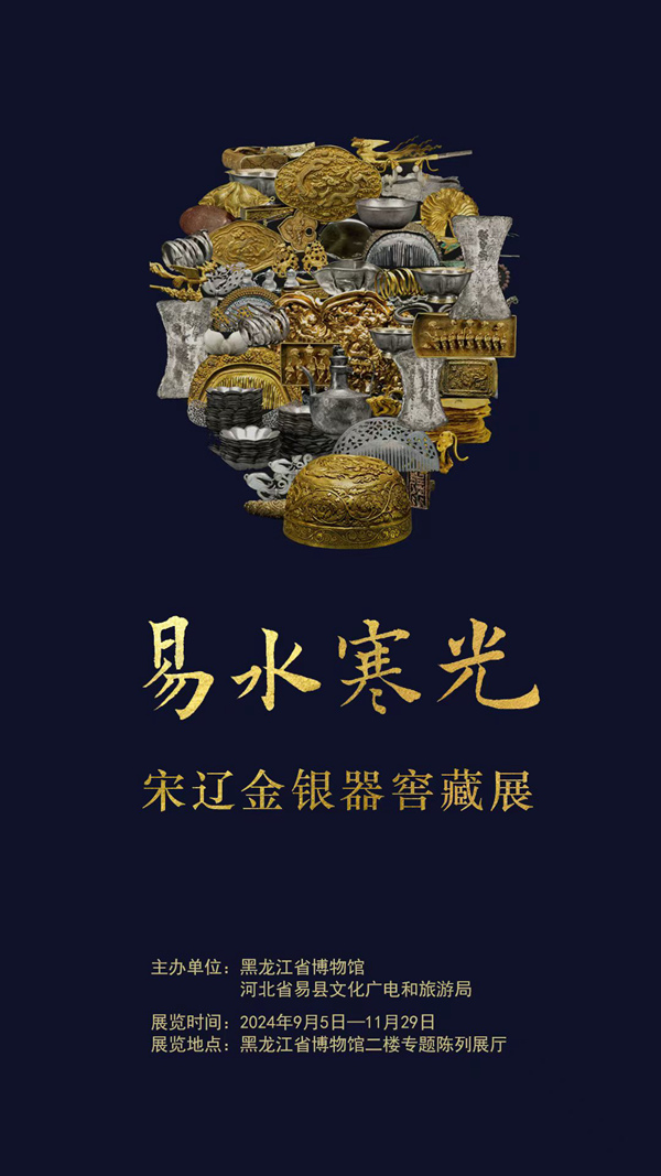 “易水寒光——宋辽金银器窖藏展”为黑龙江省博物馆与易县文化广电和旅游局联合举办展览。展览中400余件精美的金银器背后也隐藏着精彩故事,金银器在动荡不安的年代被主人匆忙装在一个绿釉陶瓮内并埋藏于地下。如今窖藏重现,让广大观众有幸一窥近千年前的风雅生活。