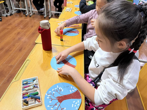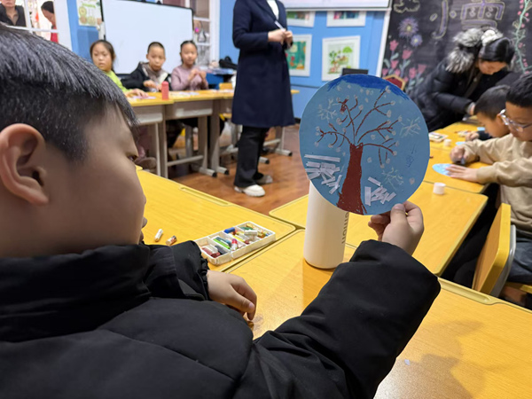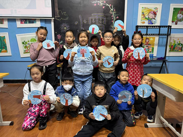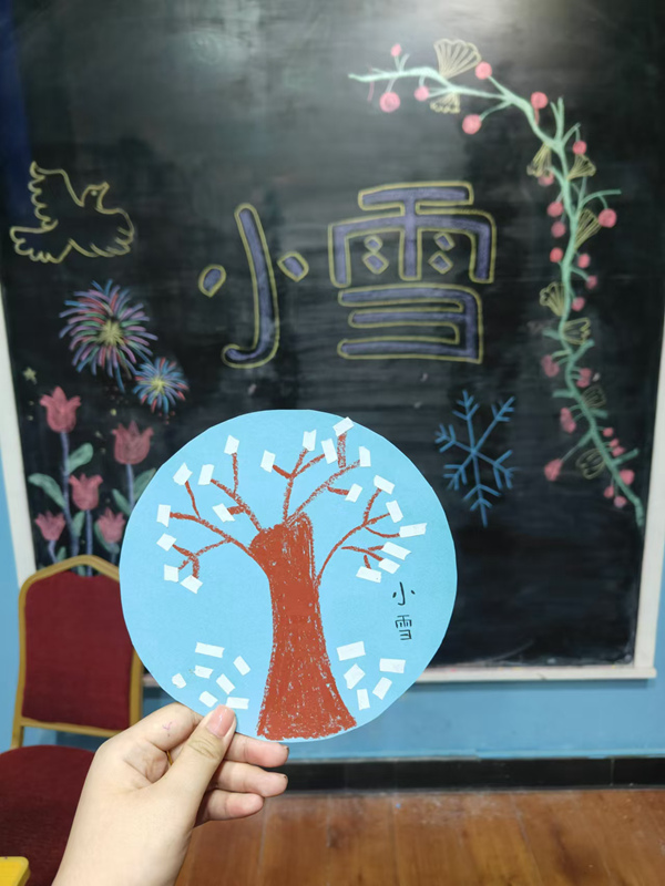 课堂上,老师通过趣味问答、互动交流的方式引导同学们积极融入本次科普课程,让同学们了解到小雪的物候现象以及传统习俗等。天气渐寒,但同学们的热情不减,在老师的带领下大家一起学习了节气知识,并制作出精美的手工作品。