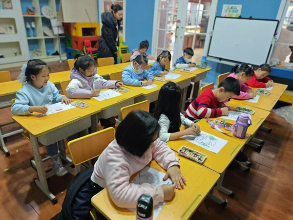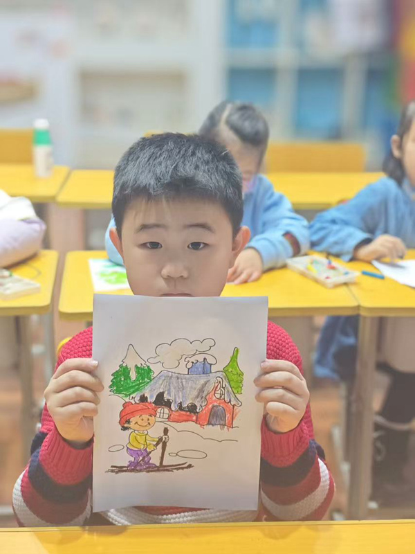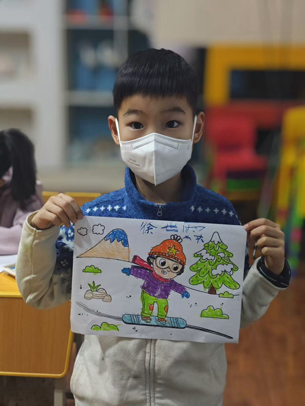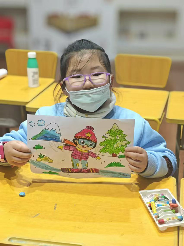 在随后的手工环节中,同学们以趣味造型滑雪板为参考,在老师的指导下积极参与、发散思维,自己动手绘画并相互展示了作品成果。