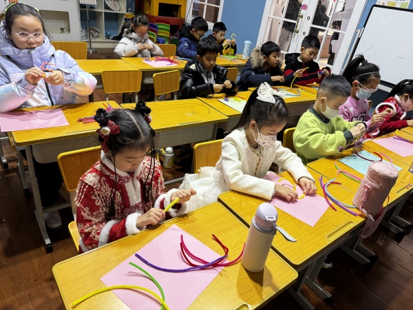 同学们在“相约龙博”课堂上了解了传统节日背后的含义,并在老师的带领下一起用“扭扭棒”做了手工,体验手工乐趣的同时,也加深了家国情怀。