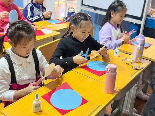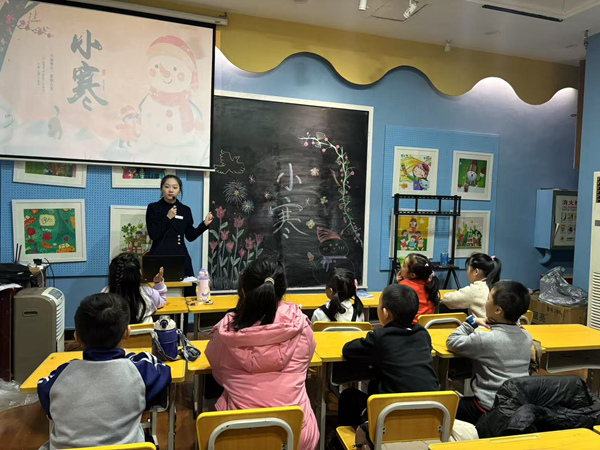 课堂上,省博物馆老师通过趣味问答、互动交流的方式向引导同学们积极融入本次科普课程。让同学们了解到小寒的历史渊源、季节划分、物候现象以及传统习俗等。天气寒冷,但同学们的热情不减,在老师的带领下大家一起学习了节气知识,并使用粘土和卡纸制作出了和节气相关的手工。